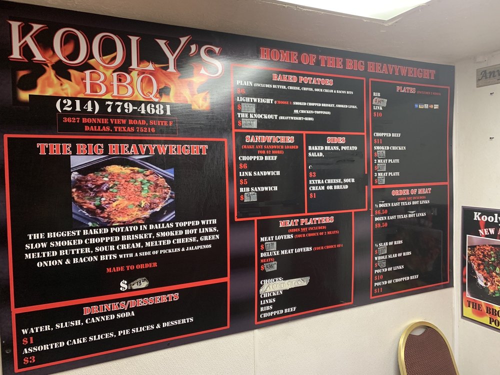 Introducing Kooly's BBQ, a Black-owned restaurant in Dallas, TX, specializing in delicious barbeque and sandwiches. This casual spot offers a variety of dishes, from their famous chopped beef sandwich to savory rib plates. With options for delivery, takeout, and even catering, Kooly's BBQ caters to all needs. The menu features mouthwatering meat platters like the Deluxe Meat Lovers, with a choice of four meats, perfect for sharing with friends. The cozy outdoor seating and happy hour specials make it a great spot for group gatherings. From the friendly waitstaff to the flavorful dishes, Kooly's BBQ is a must-visit for BBQ enthusiasts. Make sure to try their signature rib sandwich with BBQ sauce and a side of pickles and jalapenos for a truly satisfying meal experience.